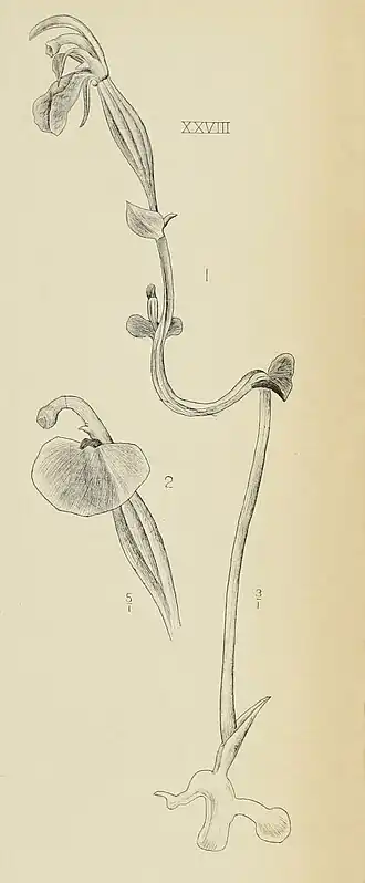Esta espécie tem muito poucas raízes, substituídas por pequenos tubérculos solitários ovoides; os caules são curtos e eretos com uma única folha à meia altura, herbácea, plana e macia; a inflorescência é delicada com apenas uma ou poucas pequenas flores terminais de cores discretas, ressupinadas; os segmentos florais são livres e similares, as sépalas levemente maiores que as pétalas; o labelo é maior que os segmentos restantes, simples, plano, apiculado com calos lamelares no disco; a coluna é curvada e delicada, sem pé, com antera terminal persistente contendo quatro polínias de cor amarela. Não há notícias de plantas em cultivo.[2]