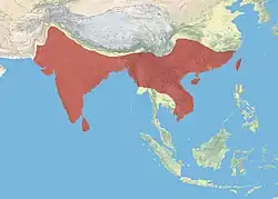- ↑ a b c d Grimmett, Richard; Inskipp, Carol, Inskipp, Tim & Byers, Clive (1999): Birds of India, Pakistan, Nepal, Bangladesh, Bhutan, Sri Lanka, and the Maldives. Princeton University Press, Princeton, N.J.. ISBN 0-691-04910-6