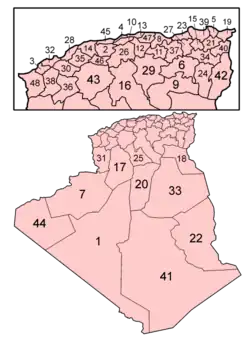 Desde 1983, as províncias (vilaietes) argelinas são: