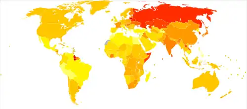 - ↑ «Mortality and Burden of Disease Estimates for WHO Member States in 2002» (xls). World Health Organization. 2002. Consultado em 13 de novembro de 2009