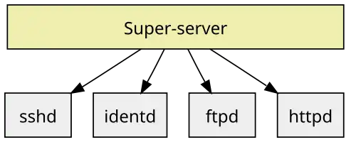 Um super-servidor iniciar outros servidores quando necessário,[1] normalmente com acesso a eles verificado por um TCP Wrapper. Ele usa bem menos recursos quando em estado ocioso. Isto pode ser ideal para estações de trabalho usadas para desenvolvimento web local, desenvolvimento cliente/servidor ou daemons de baixo-tráfego com uso ocasional (como ident e SSH).