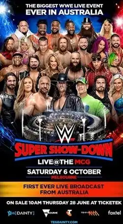 - ↑ a b «WWE'S biggest stars come to Australia for WWE Super Show-Down on October 6». WWE. Consultado em 17 de junho de 2018