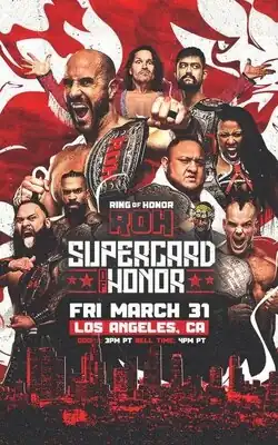 - ↑ «FINAL COUNT: ROH Presents Supercard of Honor [Galen Center, Los Angeles, CA] - WrestleTix on Patreon». WrestleTix. 4 de abril de 2023(inscrição necessária)