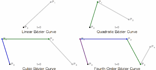 - ↑ Shene, C.-K. "Introduction to Computing with Geometry Notes. Unit 5: Bézier Curves, página visitada em 4 de fevereiro de 2014.