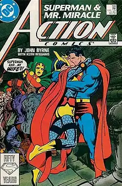 - ↑ BYRNE, John; WILLIAMS, Keith. Action Comics #593, DC Comics. Publicado originalmente em julho de 1988
