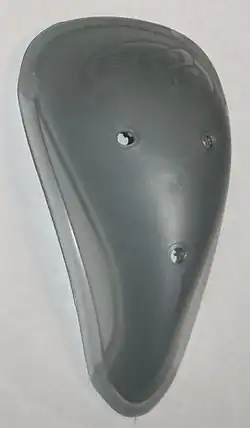 Um equipamento de proteção semelhante no críquete é conhecido como caixa. No críquete, uma caixa é geralmente usada por apenas um batedor, um goleiro e, às vezes, outros jogadores de campo. Para defensores mais distantes do batedor, o uso de uma caixa impediria seu movimento e corrida (para batedores os benefícios superam as desvantagens).