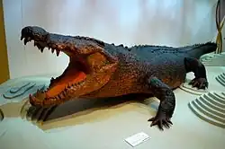 A pele e as mandíbulas preservadas foram modeladas para uma turnê australiana e posteriormente colocadas como em exposição no museu do território. Em entrevista, Ian Archibald, o taxidermista responsável pela preparação da reconstrução, lembrou as circunstâncias promocionais e políticas em torno do espécime. O recém-formado governo do Território coordenou um expositor de herpetologia, Graheme Gow, e o diretor do novo museu para preparar uma exibição espetacular do famoso crocodilo. O modelo que apóia a pele foi construído para mostrar o maior tamanho possível, com a cauda rígida e reta, e produziu o que Archibald considerou uma pose pouco natural. A cuidadosa pesquisa e preparação do taxidermista foram elogiadas por outros, mas Archibald não tem um orgulho especial na exposição.[2]