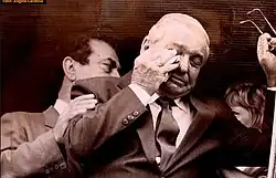 ![]() Sylvio Venturolli emocionado e consolado por Maluly quando da retirada dos trilhos da região central de Araçatuba | |
