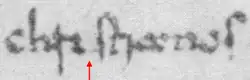 Na antiguidade, tanto no mundo grego quanto no latino, os cristãos (“christiani”) eram muitas vezes chamados de “Chrestiani”, isso porque confundiam a palavra “Christus” com “Chrestus”,[3] que era mais comum. As cópias remanescentes dos trabalhos de Tácito derivam de dois principais manuscritos, conhecidos como os “Manuscritos Medicianos”, escritos em latim. Esses se encontram na Biblioteca Medicea Laurenziana, em Florença. O segundo Manuscrito Mediciano é a cópia sobrevivente mais antiga que se refere aos cristãos e é datada do século XI, vinda do Monte Cassino.[4] Nesse manuscrito, o primeiro “i” da palavra “Christianos” é consideravelmente distinto do segundo, parecendo um tanto borrado, além de não ter a perna presente no segundo “i”; além disso, há uma lacuna entre o primeiro “i” e o “s” que vem logo em seguida. Georg Andresen foi um dos primeiros a comentar sobre a aparência do primeiro “i” e a lacuna, sugerindo em 1902 que o texto foi alterado e que havia, originalmente, um “e” no lugar do “i”.[5]