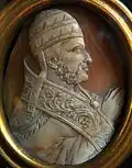 Júlio III | Originalmente enterrado na Basílica de São Pedro sans monumento em um sarcófago de pedra vermelha na capela de San Andrea; reenterrado em um antigo sarcófago em 1608, que foi reaberto dois anos depois durante a demolição;[66] às vezes citado como enterrado na capela Del Monte de San Pietro in Montorio junto com seu cardeal-sobrinho adotivo, Innocenzo Ciocchi Del Monte[67] |