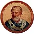 Localizado no pórtico. Originalmente enterrado no pórtico da Antiga Basílica de São Pedro, parcialmente transferido para Soissons; durante a demolição de São Pedro, transferido para Sant'Andrea della Valle e depois para a Cappella Clementina, próximo à entrada da moderna Basílica de São Pedro.[13] |