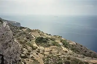 Vista de Filfla e do mar Mediterrâneo a partir do Ta'Dmejrek