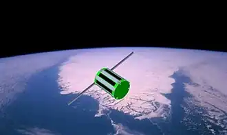 ![]() Renderização artística do picossatélite em órbita. | |