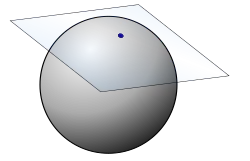 Similarmente, o plano tangente a uma superfície em um dado ponto é o plano que "apenas toca" a superfície naquele ponto. O conceito de tangente é uma das noções mais fundamentais em geometria diferencial e foi amplamente generalizado; veja Espaço tangente.