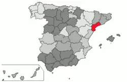 | Fronteiras: | Barcelona (província) (nordeste), Lérida (província) (noroeste), Saragoça (província) e Teruel (província) (oeste), Castellón (província) (sul) e Mar Mediterrâneo (leste). |