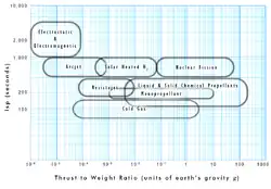 - ↑ a b c George P. Sutton & Oscar Biblarz, Rocket Propulsion Elements (p. 442, 7th edition) "thrust-to-weight ratio F/Wg is a dimensionless parameter that is identical to the acceleration of the rocket propulsion system (expressed in multiples of g0) if it could fly by itself in a gravity-free vacuum"