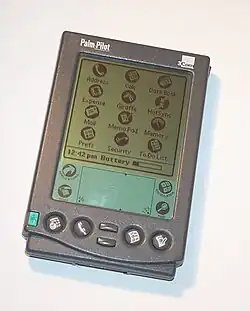 Um dos primeiros exemplos de uma tela inicial pode ser encontrado no PalmPilot, que estreou em 1997.[5] As telas iniciais antigas costumavam ser menos personalizáveis do que as atuais. Por exemplo, as primeiras versões do iOS não permitiam que os usuários rearranjassem os aplicativos na tela inicial ou mudassem a imagem de fundo.[1]