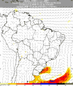 - ↑ «Inumet extendió alerta naranja por vientos muy fuertes con rachas de hasta 80 y 100 kilometros por hora». www.elobservador.com.uy (em espanhol). 17 de maio de 2022. Consultado em 18 de maio de 2022