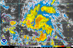 Tempestade tropical Bret pouco antes de chegar a terra em Trinidade em 20 de junho | |