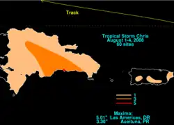 - ↑ a b Stormcarib.net (2006). «Unofficial Puerto Rico Reports for Tropical Storm Chris» (em inglês). Consultado em 26 de agosto de 2006