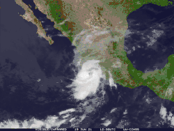 Tempestade Tropical Dolores no pico de intensidade em 19 de junho de 2021 | |