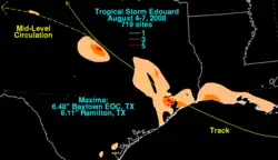 - ↑ David M. Roth. «Tropical Storm Edouard (2008) Storm Total Rainfall Image» (em inglês). Consultado em 14 de agosto de 2008. Arquivado do original em 11 de setembro de 2008