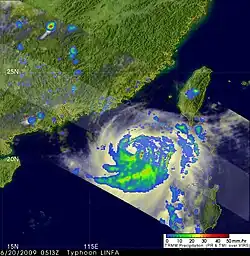 A tempestade tropical Linfa em 20 de junho de 2009, durante o seu pico de intensidade | |