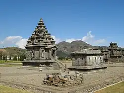 À exceção do templo de Bima, todos os templos formam um complexo dividido em três conjuntos situados numa planície rodeada de colinas e montanhas.