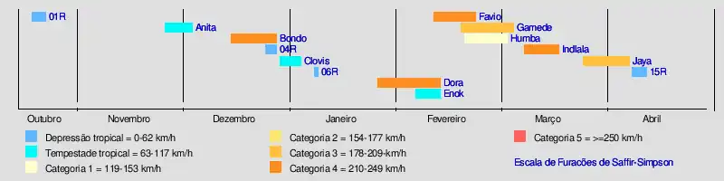 | Temporadas de ciclones tropicais no Índico Sudoeste 2004–05, 2005–06, 2006–07, 2007–08, 2008–09 |