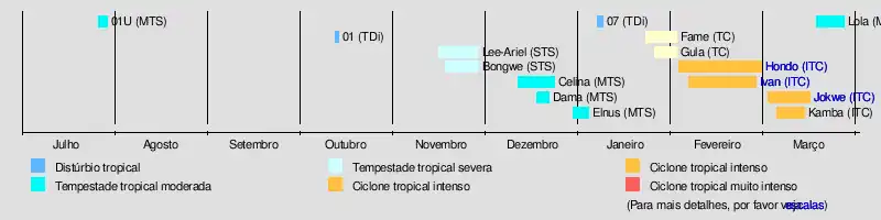 | Temporadas de ciclones tropicais no Índico Sudoeste 2005–06, 2006–07, 2007–08, 2008–09, 2009–10 |