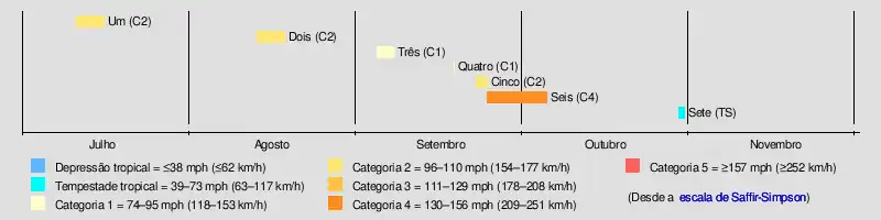 - ↑ Hurricane Research Division (2011). «Continental U.S. Hurricanes: 1851 to 1930, 1983 to 2010». National Oceanic and Atmospheric Administration. Consultado em 4 de junho de 2011