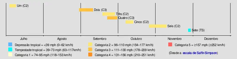 - ↑ Atlantic Oceanographic and Meteorological Laboratory (julho de 2016). «Continental United States Hurricane Impacts/Landfalls 1851-2015». National Oceanic and Atmospheric Administration. Consultado em 26 de fevereiro de 2017