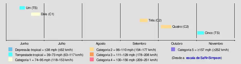 | 5 sistemas | 12 de junho – 6 de dezembro | 165 (105) | 970 | Desconhecido | 5 | |||||