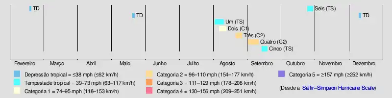 - ↑ a b c d e f g h Hurricane Specialists Unit (2010). «Easy to Read HURDAT 1851–2009». National Hurricane Center. Consultado em 29 de abril de 2010. Cópia arquivada em 13 de abril de 2010