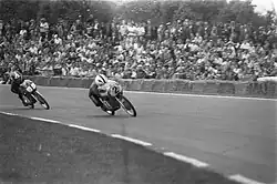 O motociclista espanhol Angel Nieto e o holandês Jan de Vries em ação.