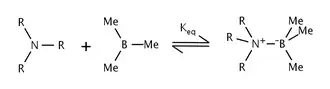 Os efeitos da tensão estérica na reação de trialquilaminas e trimetilboro foram estudados por Brown et al.[5] Descobriu-se que enquanto o tamanho dos grupos alquil na amina era aumentado, o valor da constante de equilíbrio reduziu. Esse deslocamento no equilíbrio foi atribuído à tensão estérica entre os grupos alquila da amina e os grupos metila no boro.