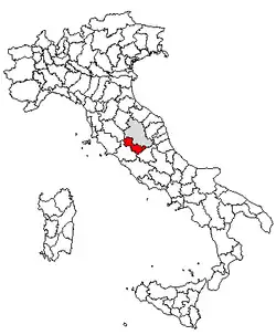 Faz fronteira a norte com a província de Perugia, a este, a sul e a oeste com a região do Lácio (província de Rieti e província de Viterbo), e a noroeste com a Toscana (província de Siena).