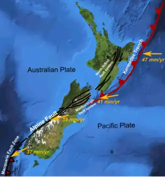 A Nova Zelândia está localizada na fronteira entre a Placa Indo-Australiana e a Placa do Pacífico. Na Ilha Sul, grande parte do deslocamento ocorre ao longo da Falha Alpina, que se conecta ao norte a um conjunto de falhas de deslizamento lateral, conhecido como Sistema de Falhas de Marlborough [en]. O movimento através da fronteira de placas é oblíquo, e a maioria das falhas apresenta um componente de deslizamento reverso. Parte da deformação resultante é absorvida no interior das próprias placas, afastada da fronteira.[3] O terremoto de Murchison de 1929 ocorreu na Falha de White Creek, situada em Buller Gorge [en].[1]