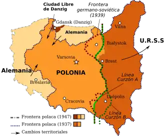 Após a invasão soviética da Polónia de 1939, a União Soviética anexou as partes orientais (chamadas "Kresy") da Segunda República Polaca, no total de 201 015 km² e 13 299 000 habitantes. A maior parte destes territórios foram anexados definitivamente pela União Soviética ao finalizar a guerra na Europa, sendo reconhecida a mudança territorial pelos Aliados. A Polónia foi compensada com territórios mais a oeste, em prejuízo da Alemanha, recebendo os chamados "Territórios Recuperados", em referência à zona de influência polaca durante a dinastia Piasta.