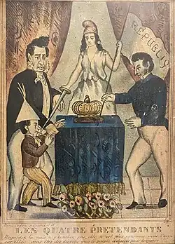 - Bonapartismo: Destaca particularmente a pessoa do soberano, o exercício solitário e autoritário do poder. É também marcado pelo desprezo pelas hierarquias naturais e pela procura permanente do apoio das massas populares, nomeadamente através da prática do plebiscito. O bonapartismo, tal como foi praticado em particular por Napoleão III, reconhece o sufrágio universal, mesmo que desconfie dos partidos políticos e do parlamentarismo.