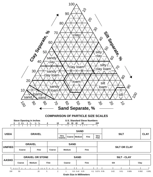 - ↑ Davis ROE, Bennett HH (1927) "Grouping of soils on the basis of mechanical analysis." United States Department of Agriculture Departmental Circulation No. 419.