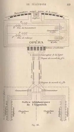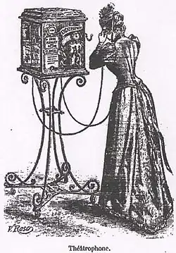Em 1890, o sistema tornou-se operacional sob o título "théâtrophone" em Paris. O serviço era oferecido pela Compagnie du Théâtrophone, fundada por M. M. Marinovitch e Szarvady.[5] O théâtrophone oferecia apresentações teatrais e operísticas aos assinantes. Pode-se considerar esse sistema como um protótipo de jornal telefônico, uma vez que incluía blocos informativos em intervalos regulares.[6] A companhia que operava o Théâtrophone instalou aparelhos públicos com operação por moedas, em hotéis, cafés, clubes e outras localidades, cobrando 50 cêntimos por cinco minutos de áudio.[7]