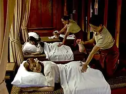 Thai massagem, massagem tailandesa ou Nuad Phaen Boran é uma terapia curativa tailandesa que utiliza a massagem como forma de equilíbrio corporal, onde o terapeuta usa seus pés, joelhos, polegares, palmas e cotovelos, além de pressão, compressão e alongamento, no corpo do paciente.[1]