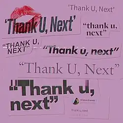 - ↑ Tania (3 de novembro de 2018). «Ariana Grande Reveals That Upcoming Album Will Be Titled "Thank U, Next"». HotNewHipHop (em inglês). Consultado em 4 de novembro de 2018