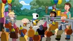 ![]() Brian Griffin e Stewie Griffin em uma de suas apresentações da sua banda de Música infanto-juvenil. | |