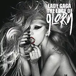 A capa do single mostra a intérprete em topless com a boca aberta, que está cercada pelas suas mãos, usando as mesmas próteses faciais da capa de "Born This Way" (2011), e o seu cabelo desgrenhado cai descontroladamente em forma de cascata à sua volta.[2][52] A cantora, que aparece com o lado esquerdo do corpo, não usa qualquer roupa e cobre os seus seios com o braço esquerdo.[53] Toda a imagem está disposta em escala de cinzentos, à excepção dos lábios da intérprete, que estão pintados de vermelho encarnado. Por outro lado, na parte superior direita, pode ser visto um texto que lê "Lady Gaga", e logo abaixo disso pode ver-se também "The Edge of", que estão escritos na fonte Impact em letras brancas maiúsculas e assumem formas muito compactadas e grossas. Abaixo disso, está escrito "Glory", que foi desenhado com um pincel.[54][55] A fotografia foi tirada na mesma sessão fotográfica que foi feita para a promoção do primeiro single do disco, que tinha sido dirigida pelo fotógrafo Nick Knight.[56]
