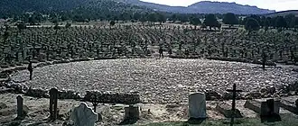 Leone não conseguiu encontrar um cemitério real para a cena final em Sad Hill, por isso, o chefe de pirotecnia espanhol contratou 250 soldados espanhóis para construir um em Carazo, perto de Salas de los Infantes, que foi completado em dois dias (em 🌍).[27]