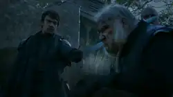 ![]() Theon Greyjoy prepara-se para executar Sor Rodrik Cassel. | |||
