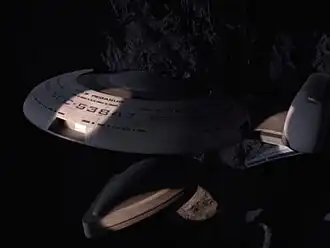 A miniatura da USS Enterprise foi iluminada usando apenas suas próprias fontes de luz pela primeira vez para a cena em que entra no asteroide onde a USS Pegasus está. Isto foi criado por meio de pequenos pontos focais presos à câmera de controle de movimento porque o supervisor de efeitos visuais David Stipes queria evitar uma "iluminação mágica de caverna". Os asteroides foram feitos de espuma, enquanto a Pegasus era uma reutilização da miniatura da USS Grissom criada para Star Trek III: The Search for Spock por causa de limitações de orçamento. Os cenários do interior da Pegasus foram construídos pelo diretor de arte Richard D. James com uma inclinação de quinze graus.[7]