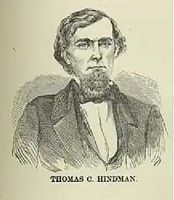 - ↑ a b c d e f Moneyhon, Carl H. «Thomas Carmichael Hindman (1828–1868)». The Central Arkansas Library System. Consultado em 31 de maio de 2007